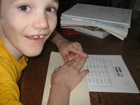 | 28 Wednesday Slow and quiet day as we all seem to be in various phases of flu symptoms. Sam wrote about pyramids, a summery of a chapter in the Lord of the Rings, an Egyptian Pharaoh family tree, Greek practice, spelling and division problems. Alex had a really rough day yesterday. He has to have his blood drawn once a year and he doesn't understand it. He fights with all his might and at 15, he is pretty strong. It takes several people to accomplish the task. So, it seemed better today to give him some easy, hands-on kinda tasks to do today rather than his usual Language Arts work. We made a little booklet about fossils, a map of the Nile River and an experiment about density, ranking the heaviest to lightest. James worked on "silent e" words. He has a lot of trouble with remembering both the long and short vowel sounds. Seems as if he can remember either one or the other, but not both. He then worked on math word problems from How High Can a Dinosaur Count and other Math Mysteries? Quentin worked on his handwriting (h) and then subtraction problems from Little Red Riding Hood's Math Adventure. Sam was Katie's assistant this time for Quentin's ABC Cooking project because Katie can't touch the breadstick dough because it has casein and gluten in it- "I" is for inchworm snacks to share. We spent the afternoon... watching Joseph, King of Dreams... reading Lord of the Rings, drawing pirate pictures. |