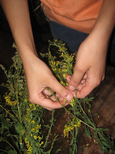 dyeing cloth with the Goldenrod, an idea I got from 5 Orange Potatoes.