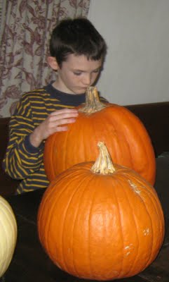| 2 Monday Today we discussed our observations about pumpkins that we had been making all last week. Sam and Momma made up new rules for a game. He had gotten a game last Christmas and we didn't like the current rules, so his "assignment" was to come up with new ones. We will see how these play out. He was also given his final exam question for history. Quentin practiced writing the letter "I" both in upper and lower case, but he whined when we worked on short words with the short "i" in them, so we went on to comparisons. He started a self-portrait, but then decided he didn't like the way it was turning out so, we went on to math word problems and he decided he was done, so we quit table work. He played dress-up some with the old Halloween costumes, and played cowboy quit a bit. He looked at a homeschool materials catalog and picked out what he wanted. We received a Spiderman disc from Netflix in the mail (you know the old cartoon we watched as kids) and he was thrilled. He had been waiting for it since he had bought Fantastic Four Super Heroes figures. We couldn't find the Fantastic Four disc on Netflix, so Spiderman was the next best thing. He watched that for the rest of the afternoon. James seemed the most unwell today. He has mostly laid quietly or slept. He tried to do some table work but was not up to it. Alex worked on Apologia Science chapter 1, which he can do, but it goes very slowly. He worked on sentences with objects, and wrote about Menes (first Pharaoh of Egypt.) |