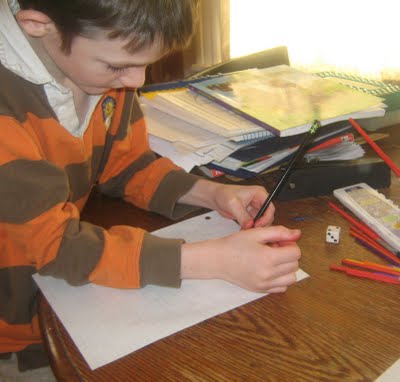 | 1 Tuesday Jmes started offf the day opening the first window of the Advent Calendar, before heading off with Steven to his allergist appointment. It is three hours away, so it makes for a long day. Quentin practiced writing the letter L, and painted, and did some living math. It was the Best of Times He also enjoyed playing with our sequencing story cards. He liked to put them out randomly first and laugh at the funny story it made and then put them in order. Sam completed some writing about mummification. He also did some Greek, spelling, and read about Epic literature. Alex worked on his language arts. He also did some work in science and history. Continuing with the "N is for Noodle" theme, Katie and Quentin made dinner- Noodles served three ways! with tomato sauce, cheese and butter and Italian dressing. We voted on them. The rabbit had a little time out of the cage. After Steven and James arrived home, Steven immediately left again with Sam to take him to Square Dancing lessons. |