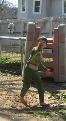 Fridays are bread baking day three loaves of white bread made with organic naturally white flour. We practiced our Greek words, combining them together to make all sorts of new words, then we colored pictures of Greek triremes and glued on pieces of blue tissue papers for texturing the sea. We sat on the front porch and I read to them The Librarian Who Measured the Earth about Eratosthenes' many accomplishments including measuring the earth with only a 200 mile margin of error. We also enjoyed the wonderful spring weather. We delivered some of the bread to a neighbor, and stopped by the park for some play. |