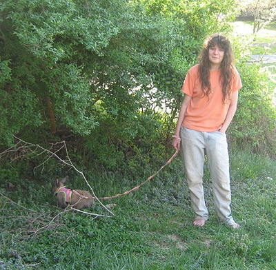 Katie took the rabbit for a walk, while the boys raced around, playing -some sort of Medieval vs. the future game.