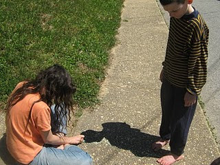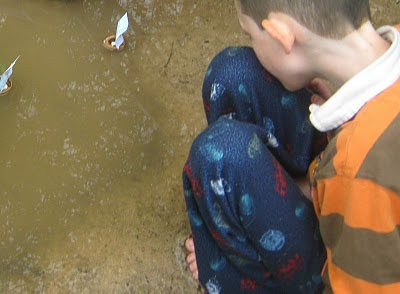 We began our study of the Roman Empire with maps (this one is Quentin's) and timelines. We also studied math (Sam had a quiz), and Greek, and other such things. There were some more postcards waiting for us in the mailbox. We looked at maps and found the places they came from. It was raining today so Katie showed the boys how to crack walnuts in half and make boats out of them. They sailed them outside in the puddles the rain was making, which delighted them for quite a while.Then we were off to the library, and then afterwards, since the rain had let up a stroll through the gardens. |