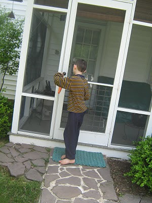 After a breakfast of french toast made from the last of the homemade white bread which had gotten a little crusty, calisthenics before it got too hot. Then house cleaning and a May Day project. Katie helped them made cone-shaped baskets, and gather wild flowers to deliver to the doors on our street. Then off to town to get a cool treat on this very hot day.