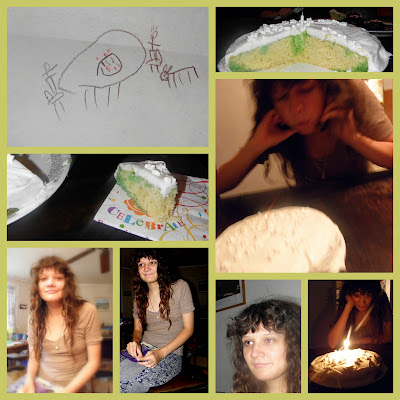 Thursday: Today was Katie's 19th birthday. We only had a cake and sang to her. Her presents are all to come later on. We played with chromotography today. It rained hard all day as a tropical depression went through.