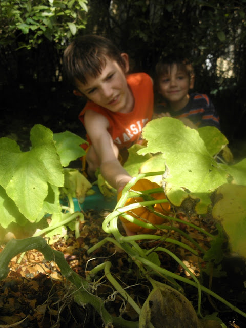Wednesday: The boys found a little volunteer pumpkin in the little turtle box garden on Michaelmas. Today the boys worked in their history notebooks and we read about the Crusades.