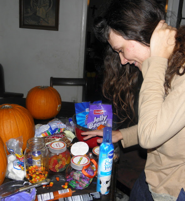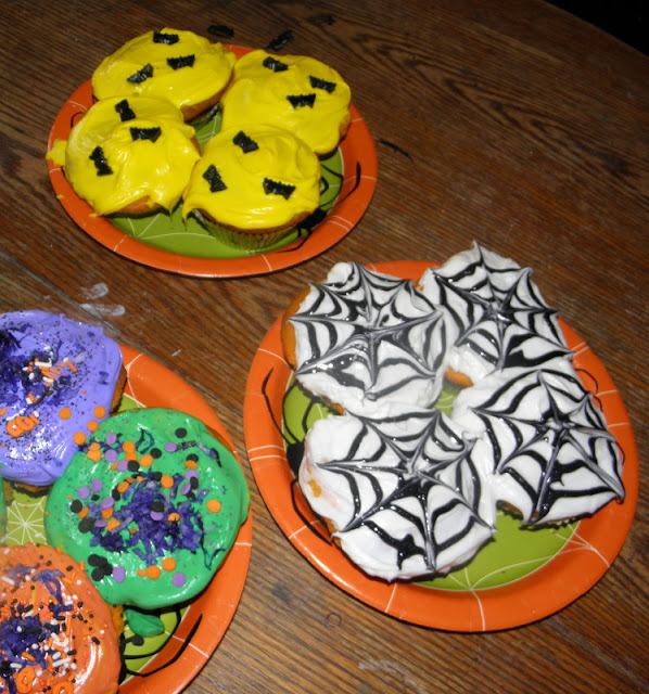 | Saturday: Preparations for Halloween fun included decorating cupcakes. |