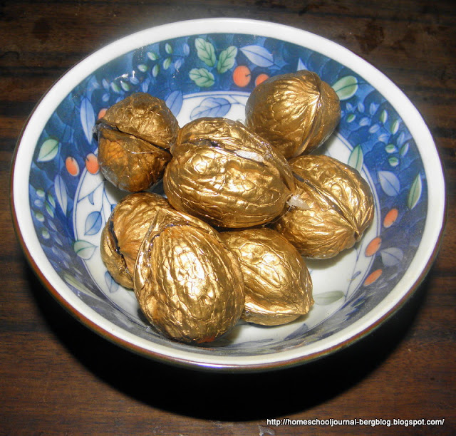 | 31 and 1 Friday and Saturday seventh and eighth days of Christmas Hoping not to sound too overly superstitious, but I also hope that our having dreadfully awful colds on these days does not hold a ill omen for the new year. We were all too sick to care about celebrating, so I did not get to the ideas I had for celebrating. Perhaps next year. We did have our black-eyed peas and rice for New Year's Day, however. We opened our fortune walnuts. "Eat poor that day, eat rich the rest of the year. Rice for riches and peas for peace." - Southern saying on eating a dish of Hoppin' John on New Year's Day. |
