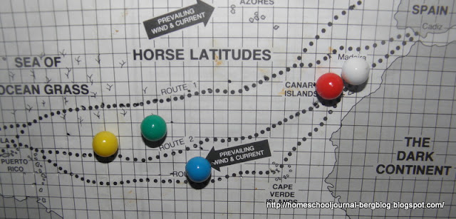 And in our Privateers/Galleon game, it looks as if James (red) and Katie (white) might make it back to Spain with their load of gold! Alex,(green) however, has a Privateer (Quentin-blue and Sam-yellow) in front and in back of him! |