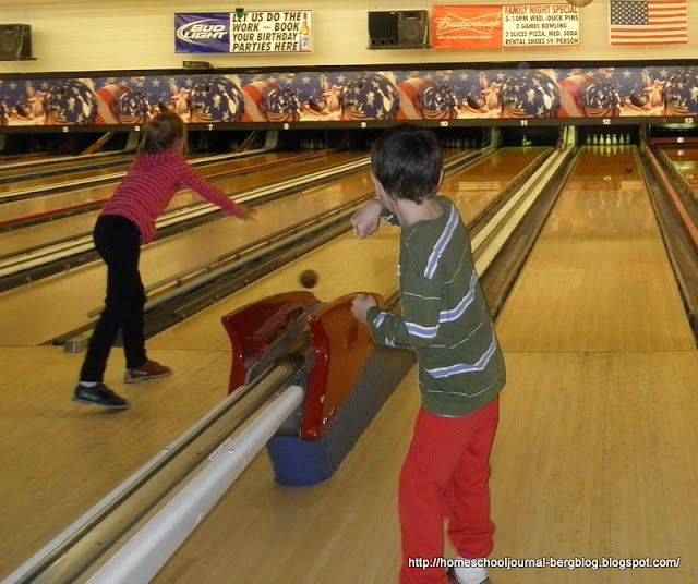 After reading and writing in the morning, we had ribbon sandwiches for lunch, with layers of egg salad, cream cheese with black olives, and pimento spread. Then we met friends at the bowling alley, for bowling of course, and snacking and socializing. Steven made Chinese Meatballs in Sweet and Sour Sauce for dinner.