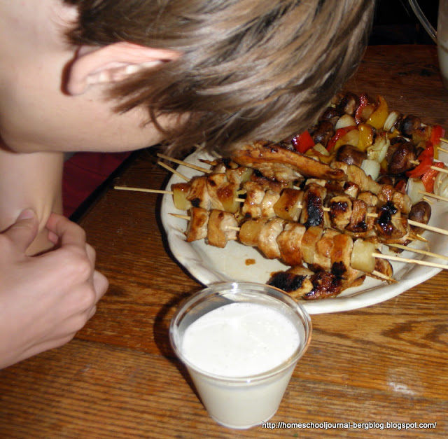 | Monday 20 We learned about Hawaii and made a page in our Postcard-Geography album. Our dinner included Kabobs with pineapple and Pina-Colada milkshakes. |