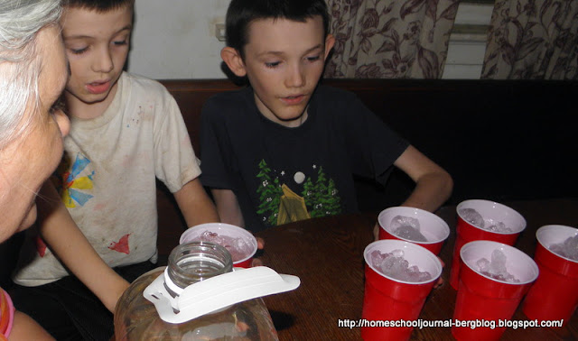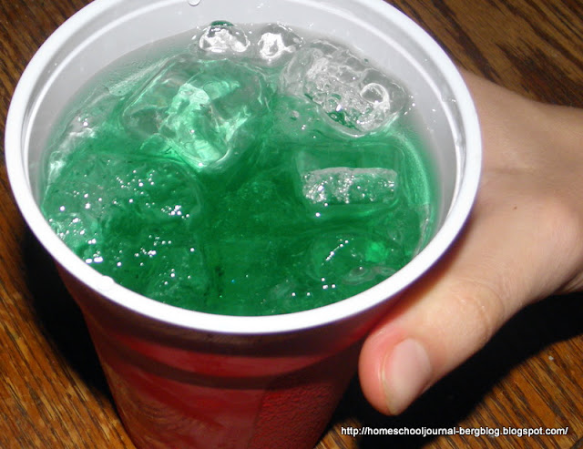 | We also set up a surprise of color-changing juice. |