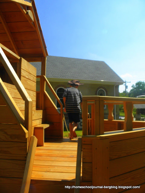 | Katie also took the boys to play on the new pirate ship they have at the community center. |
