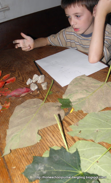and we formed three groups of them. I had him count each group and write down the quantities.