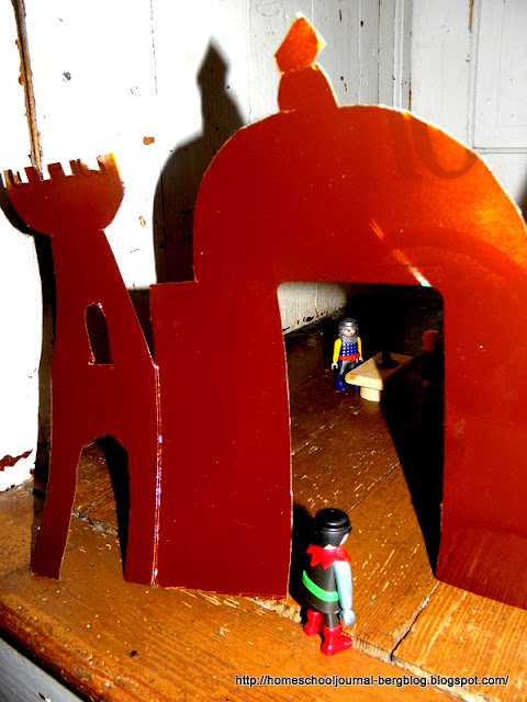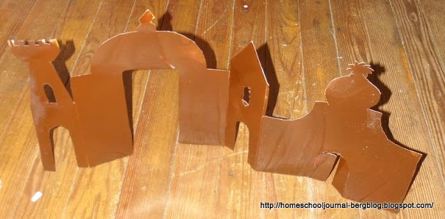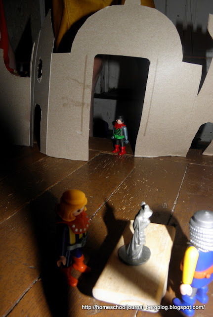 Our morning was busy. While Steven worked with his Physical Therapist, I made a little set of Medieval/Renaissance buildings for Quentin made from this template at Mini-eco to go with our readings about Islamic Empires in the Renaissance.