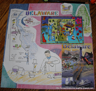 Alex colored in the coloring page for Delaware and made the scrapbook page.