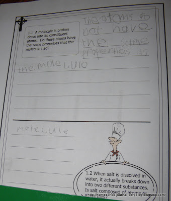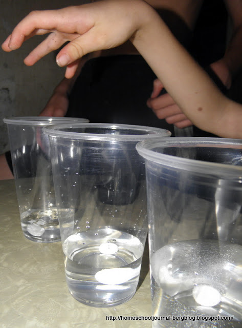 The concentration experiment came from this science book, which I am using this year with my older students. I have used it before with Katie, and taught it at a co-op, so we are familiar with it. The experiments are pretty easy and usually use materials you have around your house already. The text is very readable, so my students can read it on their own. I used the accompanying study guide questions and tests with my daughter, but I am trying narration and journaling with my boys this time around instead.