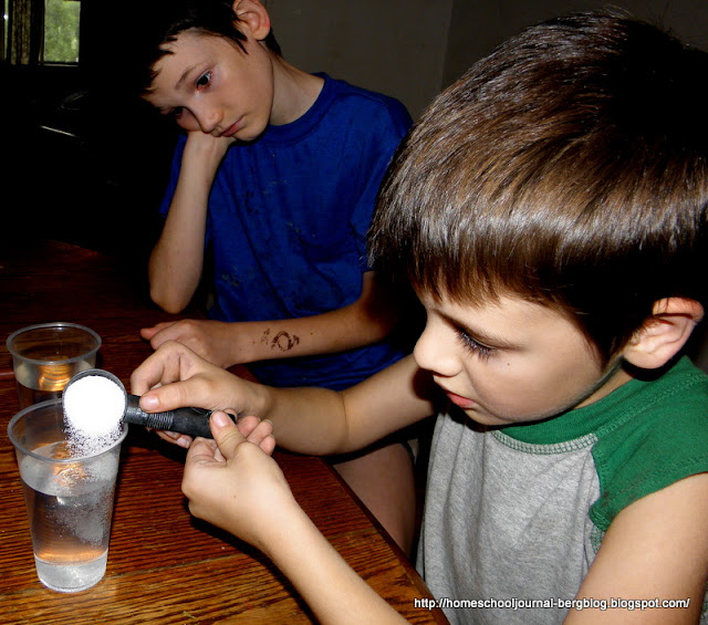 Sam and Alex began Exploring Creation with Physical Science, focusing mainly on metric measurement as they have already studied atoms and molecules. We had already completed the first experiment, Atoms and Molecules, which highlights the difference between molecules and atoms, last year with The Composition of Water.