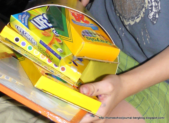 And with their new packs of 24 Crayola colors, the boys played Word Roll game.