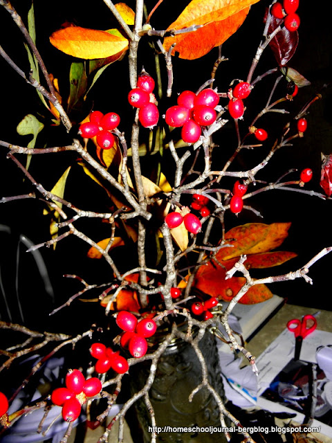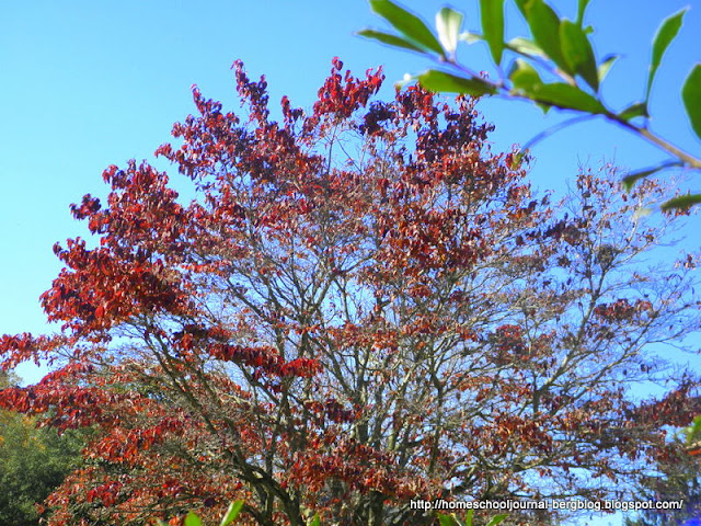 Our nature study this week was the Dogwood tree in autumn. James took some photos of the tree when it was full of beautiful red leaves.