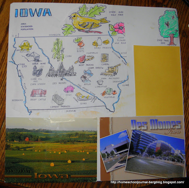 We completed a page in our postcard-geography album on Iowa.