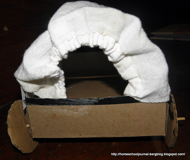 We made a model of a covered wagon for the boys to play with and imagine pioneer adventures.