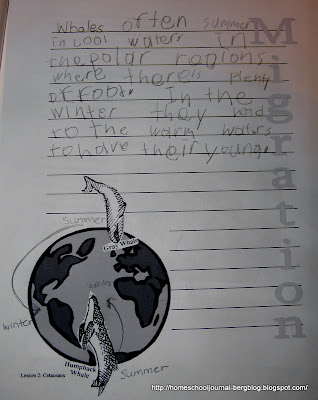 | Alex's page on whale migration notebook page from Apologia, click on Course Notebook (It is free!) |