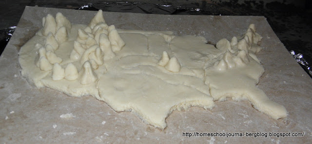 Inspired by Hodgepodge's salt dough map, we made one of America, and it should prove useful as we move into our unit on Lewis and Clark. We will paint it next week.