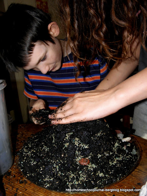 and added stones around the pot's opening. The dish that goes with the pot was used to cover the opening of the pot. It serves as the stone over Jesus' tomb.