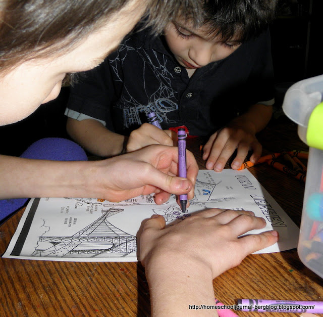 which goes nicely with our study of Lewis and Clark, as it is the same time period. It weaves factual information about how they lived and wonderful diagrams with a little story of Noah Blake's life as written in his diary. James, especially, is loving it.