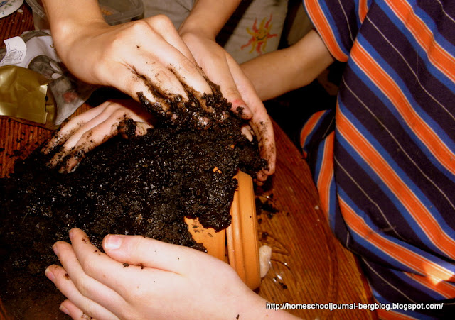 They took a small clay pot, turned it on its side and covered it with wet soil.