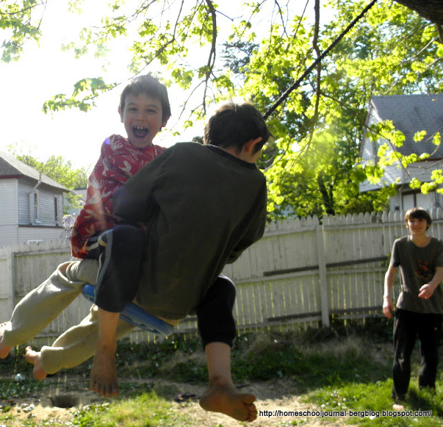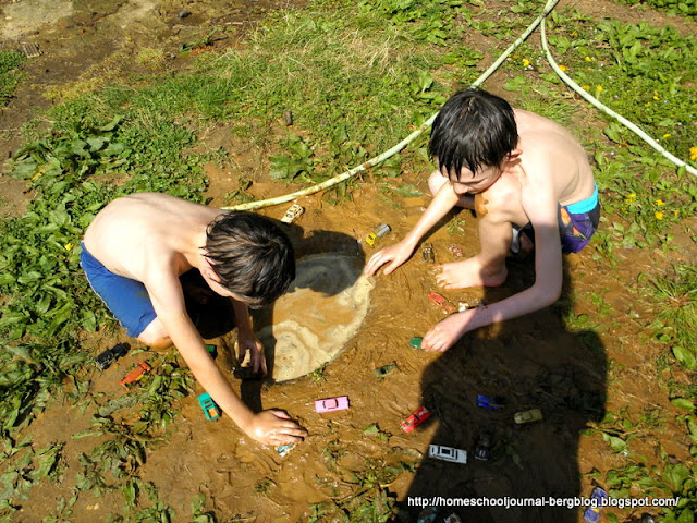 The boys have really been having a lot of fun outside, swinging, spaying water with the hose and mud play.