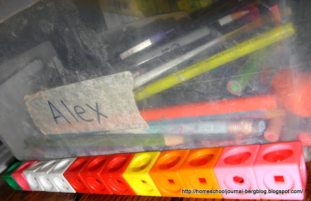 Quentin measured things of his choosing, such as Alex's school supplies box, with Unifix cubes. He decided for himself whether he would round to the closest under or over the measurement. All of these choices he makes for himself in math activities makes him think about math concepts and also makes him more invested in the activity.