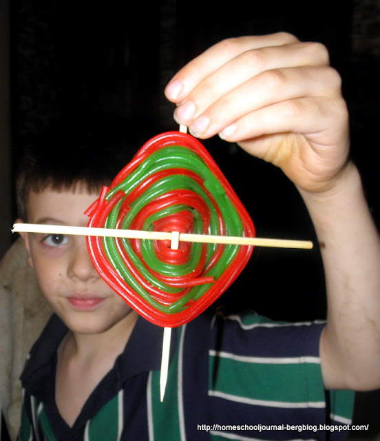 We also made edible God's Eyes from Twizzlers (I saw them first here.)