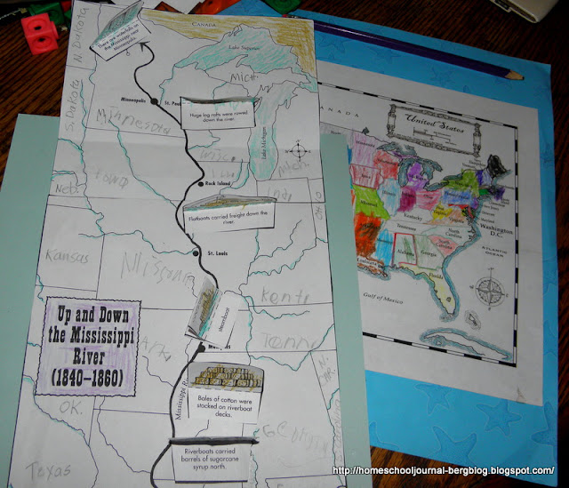 The boys put together and colored maps to show the economic importance of the River boats on the Mississippi from 1840-1860. They identified the states that surrounded the Mississippi River.
