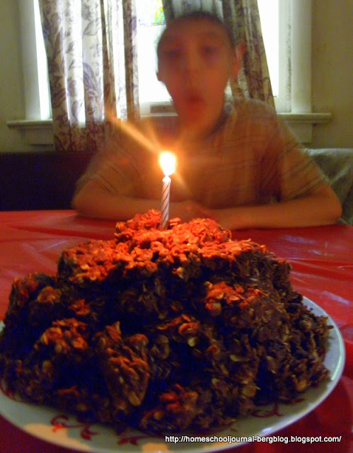 | My baby turned 8 years old on Friday and his request for a birthday "cake" was a stack of Katie's no-bake cookies. |