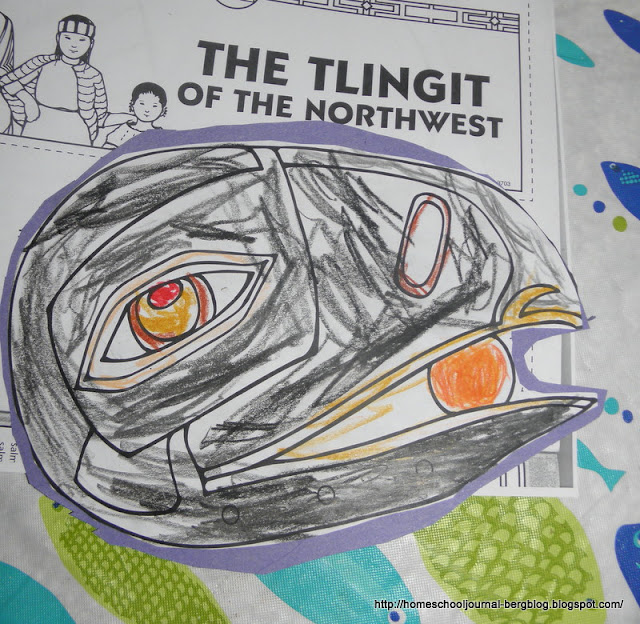 and of the Tlingit of the Northwest and completed craft projects from History Pockets: Native Americans. We are finishing up our study of American Indians, but we want to do a few more hands-on projects, so I imagine that this will go on for the rest of the summer at a leisurely pace.