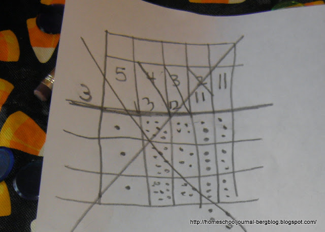 He has worked with this color scheme before when we worked with addition/subtraction and multiplication and so he knows that each color is a multiple of ten of the chip to it's direct right.