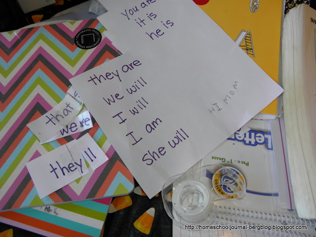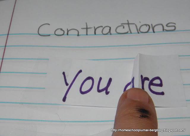 We learned about contractions this week. At first we cut them apart and re-taped them together to make the contractions...