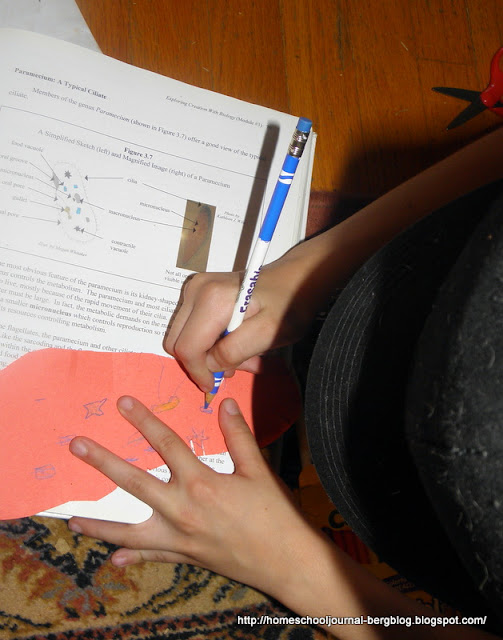 Quentin made is Paramecium by tracing his foot on construction paper...