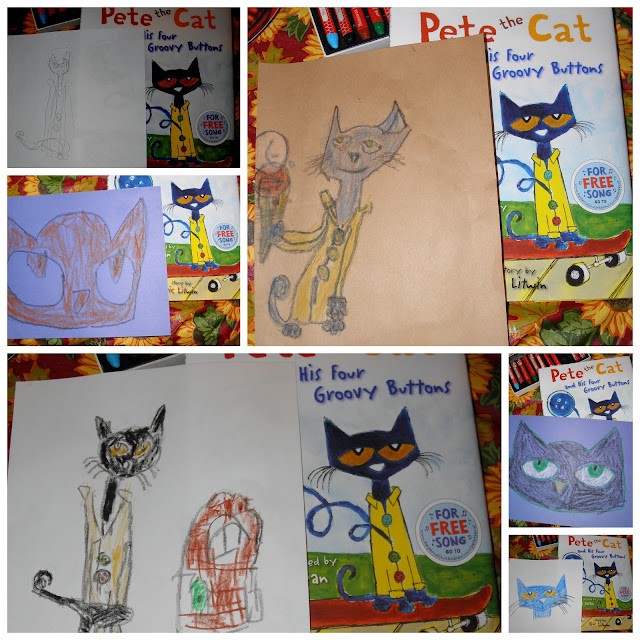 The younger boys enjoyed reading and making pictures of Pete the Cat.