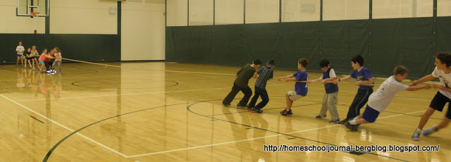 | The girls didn't stand a chance against the boys in tug-of-war. : ) |