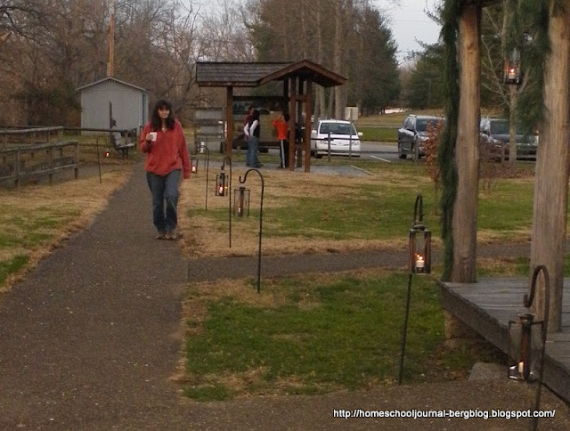 Our first stop was at Carter Mansion which was decorated for Christmas in the style of 1780's. They had costumed interpreters, candlelight and hot wassail. The best part of the evening for me, however, was the bonfire outside. The volunteers played period Christmas music and stoked the fire with straw to symbolize the straw that the Christ child laid in and the subsequent fire bursts symbolizes the rebirth of Christ.