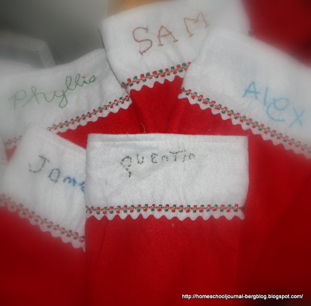 Because our Christmas stockings are packed, Quentin came up with the idea of us each embroidering stockings this year.