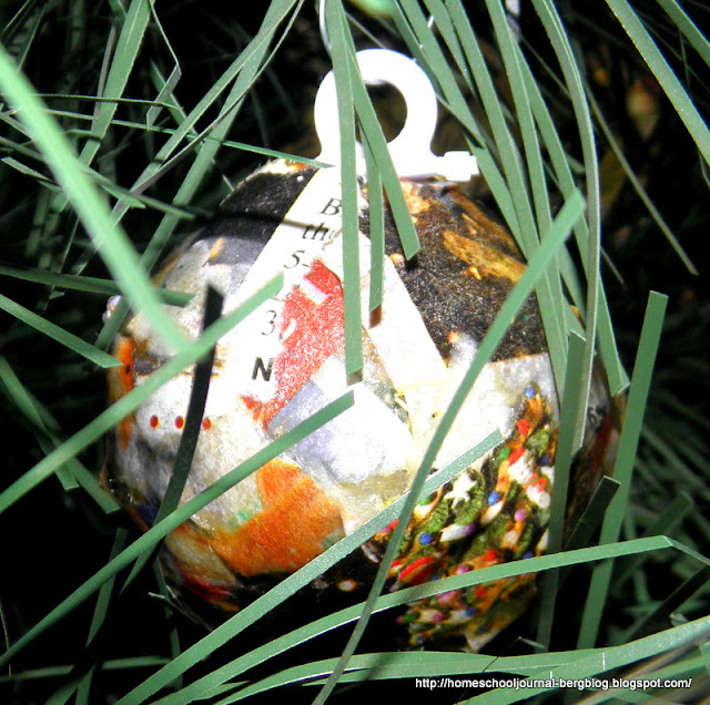 James came up with the idea of making a mosaic-type ornament from bits torn from Christmas catalogs.
